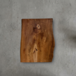 赤みを帯びた褐色の緻密な木肌は、磨くと落ち着いた光沢が現れます。木材としての流通がごく少なく、一枚板として出会えること自体が貴重です。